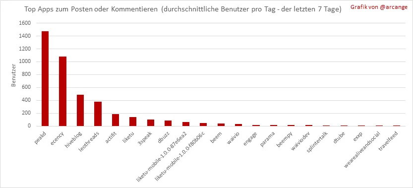 Diese Grafik zeigt, welche Apps am häufigsten zum Veröffentlichen von Posts und Kommentaren verwendet werden. Man beachte dabei, dass ein und derselbe Benutzer mehrere verschiedene Apps verwenden kann.
