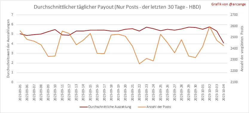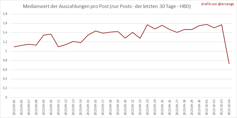 Diese Grafiken zeigen den durchschnittlichen Medianwert des Payouts pro Post der letzten 30 Tage.
