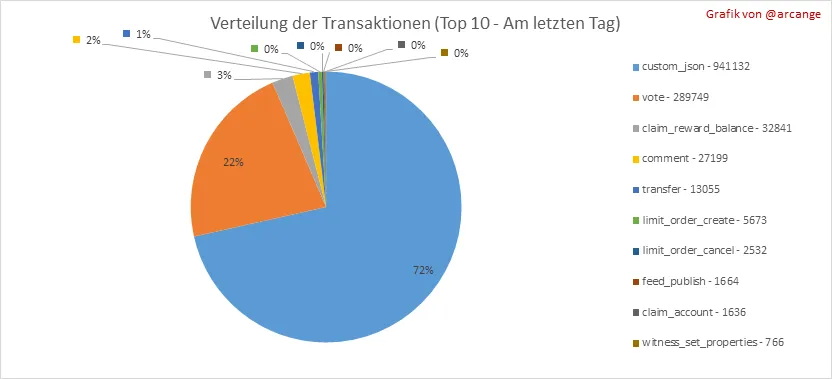 Diese Grafik zeigt die Verteilung der 10 wichtigsten Transaktionstypen nach der Anzahl der in der Blockchain ausgeführten Vorgänge.