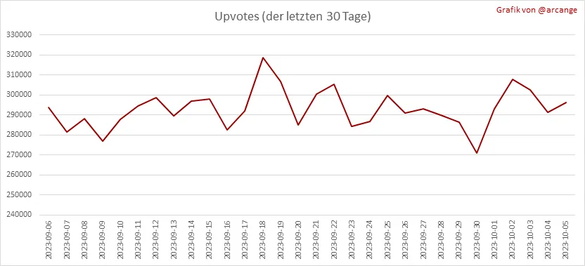Diese Grafiken zeigen die Entwicklung der Kuration (Upvotes) über die gesamte Blockchain-Lebensdauer und der letzten 30 Tage.