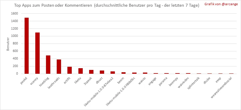 Diese Grafik zeigt, welche Apps am häufigsten zum Veröffentlichen von Posts und Kommentaren verwendet werden. Man beachte dabei, dass ein und derselbe Benutzer mehrere verschiedene Apps verwenden kann.