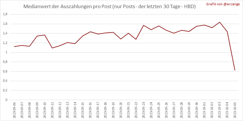 Diese Grafiken zeigen den durchschnittlichen Medianwert des Payouts pro Post der letzten 30 Tage.