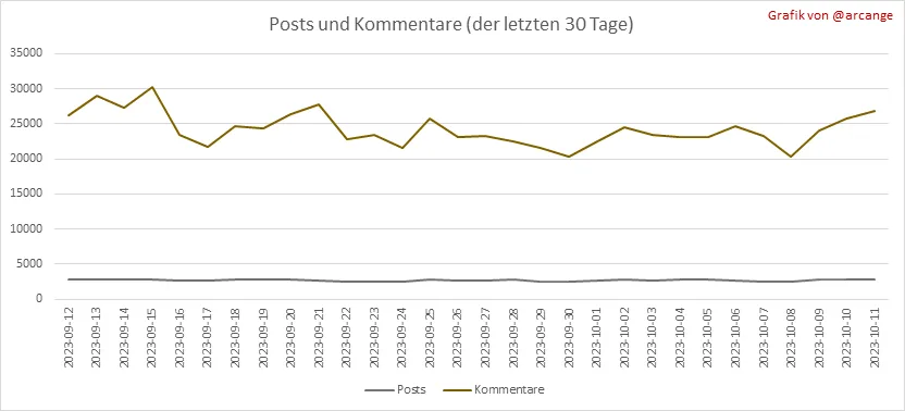 Diese Grafiken zeigen die Entwicklung von Posts und Kommentaren über die gesamte Blockchain-Lebensdauer und der letzten 30 Tage.