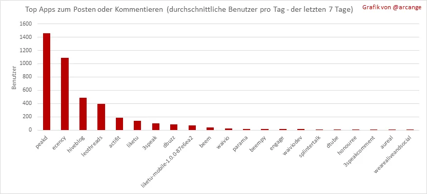 Dieses Diagramm zeigt, welche Apps die meisten Aktivitäten (custom_json-Operationen) in der Blockchain generieren.