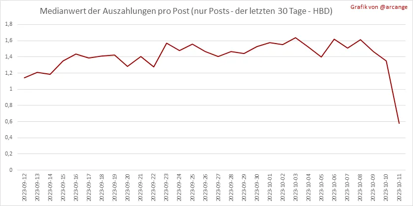 Diese Grafiken zeigen den durchschnittlichen Medianwert des Payouts pro Post der letzten 30 Tage.