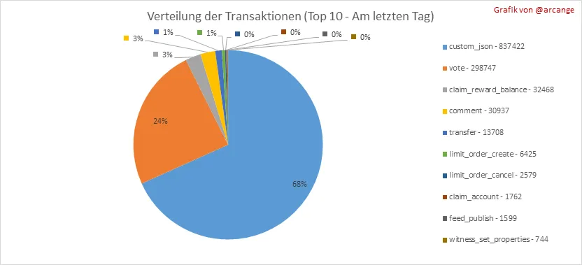Diese Grafik zeigt die Verteilung der 10 wichtigsten Transaktionstypen nach der Anzahl der in der Blockchain ausgeführten Vorgänge.
