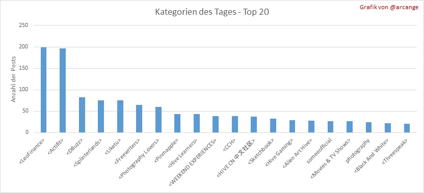 Diese Grafiken zeigen die aktivsten Communitys nach Anzahl der Beiträge (Über die gesamte Blockchain-Lebensdauer und am letzten Tag).