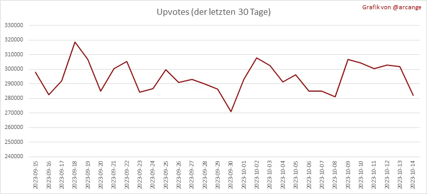 Diese Grafiken zeigen die Entwicklung der Kuration (Upvotes) über die gesamte Blockchain-Lebensdauer und der letzten 30 Tage.