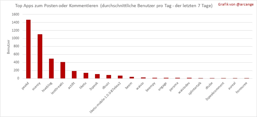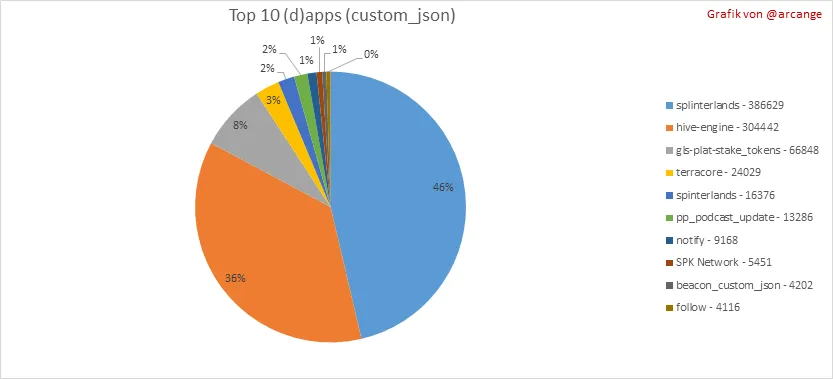 Dieses Diagramm zeigt, welche Apps die meisten Aktivitäten (custom_json-Operationen) in der Blockchain generieren.