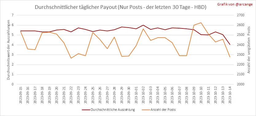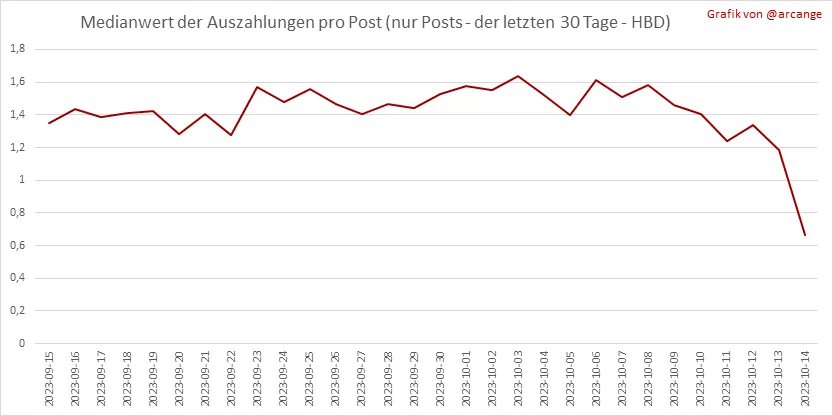 Diese Grafiken zeigen den durchschnittlichen Medianwert des Payouts pro Post der letzten 30 Tage.