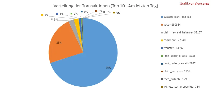 Diese Grafik zeigt die Verteilung der 10 wichtigsten Transaktionstypen nach der Anzahl der in der Blockchain ausgeführten Vorgänge.
