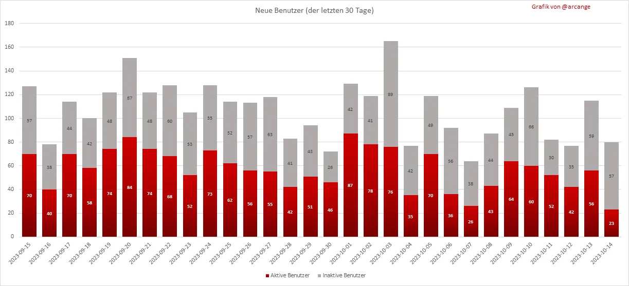 Der graue Teil jeder Spalte gibt an, wie viele Konten inaktiv sind (all Diejenigen, die in den letzten 30 Tagen nicht gepostet, kommentiert oder gevotet haben).