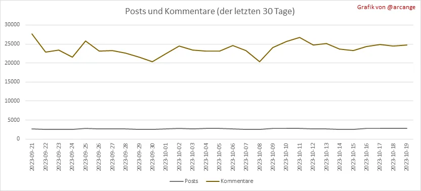 Diese Grafiken zeigen die Entwicklung von Posts und Kommentaren über die gesamte Blockchain-Lebensdauer und der letzten 30 Tage.