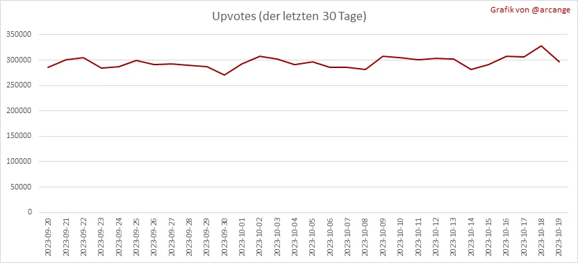 Diese Grafiken zeigen die Entwicklung der Kuration (Upvotes) über die gesamte Blockchain-Lebensdauer und der letzten 30 Tage.