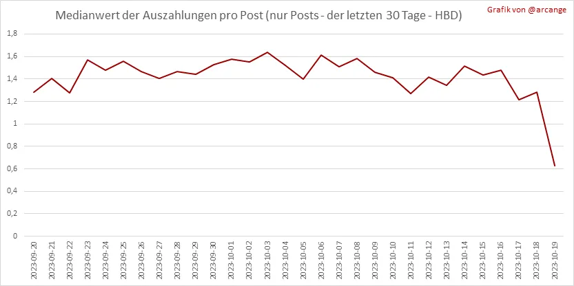 Diese Grafiken zeigen den durchschnittlichen Medianwert des Payouts pro Post der letzten 30 Tage.