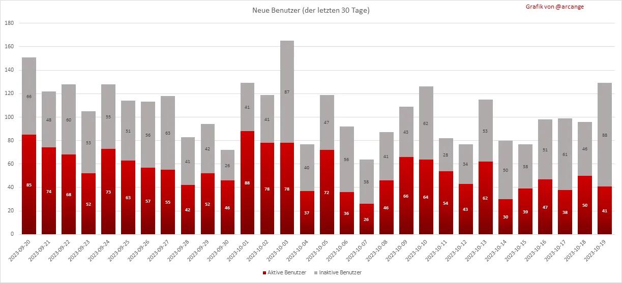 Der graue Teil jeder Spalte gibt an, wie viele Konten inaktiv sind (all Diejenigen, die in den letzten 30 Tagen nicht gepostet, kommentiert oder gevotet haben).