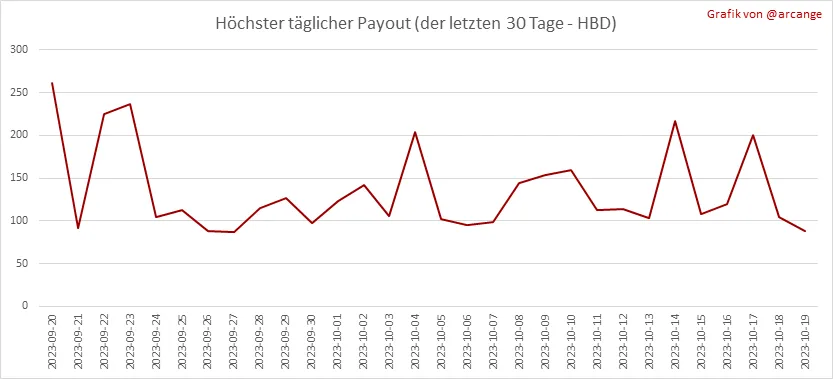 Diese Grafik zeigt den jeweils höchsten Payout, der in den letzten 30 Tagen für einen Beitrag (oder Kommentar) gezahlt wurde.