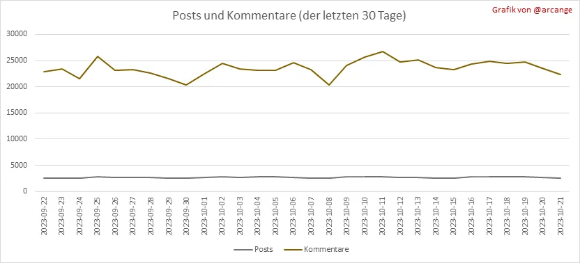 Diese Grafiken zeigen die Entwicklung von Posts und Kommentaren über die gesamte Blockchain-Lebensdauer und der letzten 30 Tage.