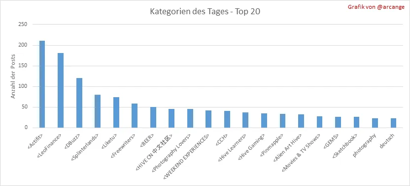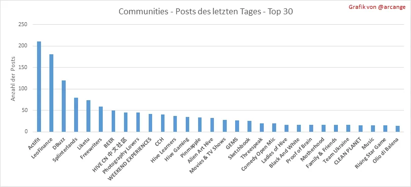Diese Grafiken zeigen die aktivsten Communitys nach Anzahl der Beiträge (Über die gesamte Blockchain-Lebensdauer und am letzten Tag).