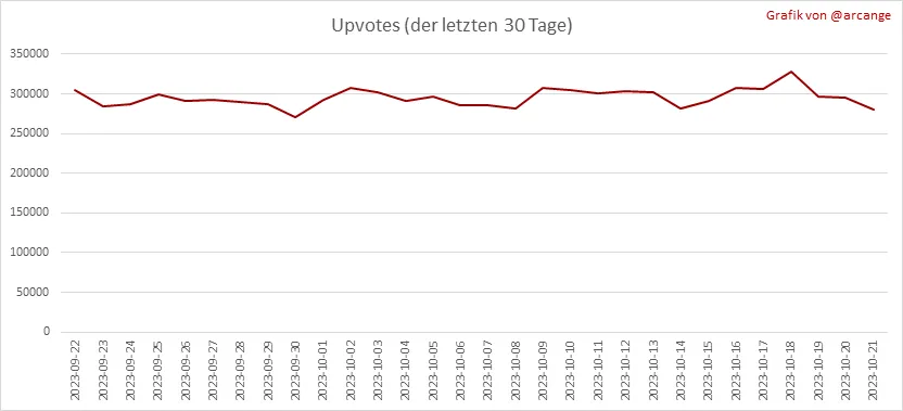 Diese Grafiken zeigen die Entwicklung der Kuration (Upvotes) über die gesamte Blockchain-Lebensdauer und der letzten 30 Tage.