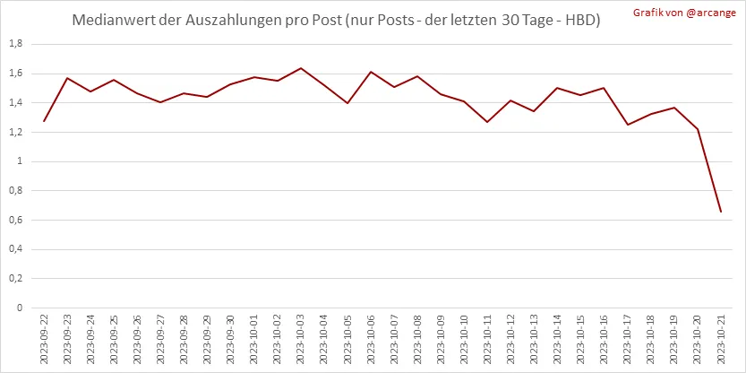 Diese Grafiken zeigen den durchschnittlichen Medianwert des Payouts pro Post der letzten 30 Tage.