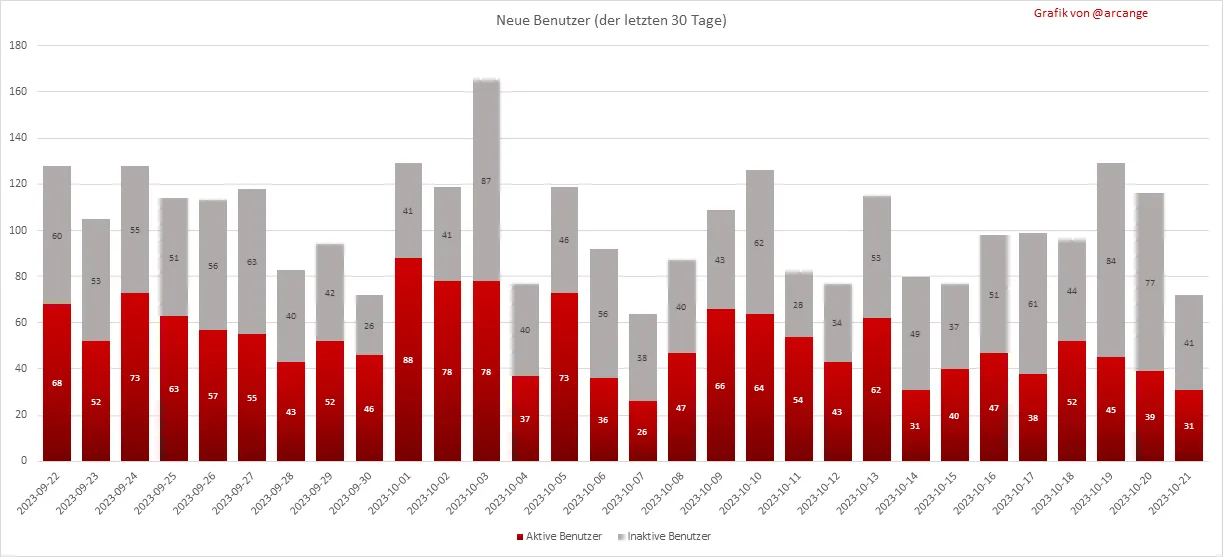 Der graue Teil jeder Spalte gibt an, wie viele Konten inaktiv sind (all Diejenigen, die in den letzten 30 Tagen nicht gepostet, kommentiert oder gevotet haben).
