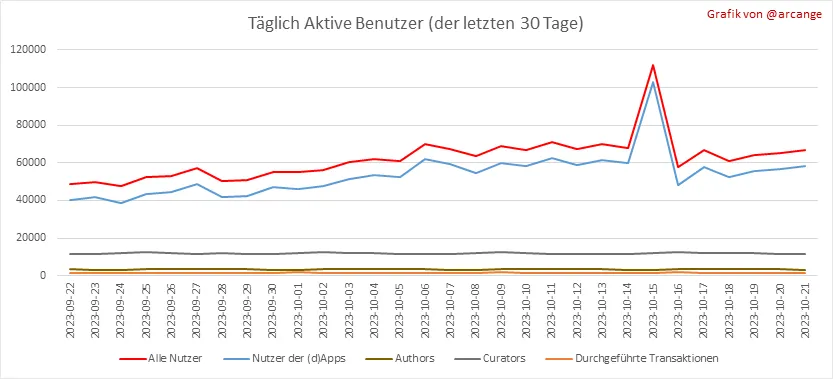 Alle in diesem Bericht enthaltenen Informationen basieren auf den Daten, die auf der Blockchain bis 2023-10-21 Mitternacht UTC gesammelt wurden. Ziel dieses Berichts ist es, einen klaren Überblick über die Vorgänge auf der Hive-Blockchain zu verschaffen.