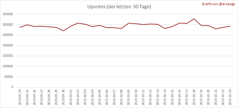Diese Grafiken zeigen die Entwicklung der Kuration (Upvotes) über die gesamte Blockchain-Lebensdauer und der letzten 30 Tage.