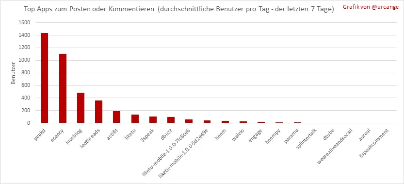 Dieses Diagramm zeigt, welche Apps die meisten Aktivitäten (custom_json-Operationen) in der Blockchain generieren.