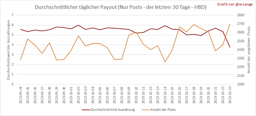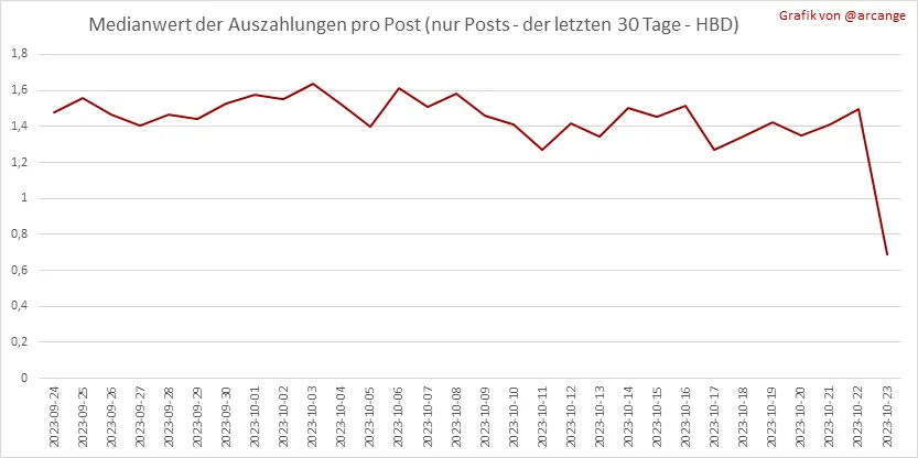 Diese Grafiken zeigen den durchschnittlichen Medianwert des Payouts pro Post der letzten 30 Tage.
