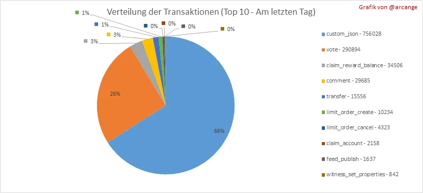 Diese Grafik zeigt die Verteilung der 10 wichtigsten Transaktionstypen nach der Anzahl der in der Blockchain ausgeführten Vorgänge.