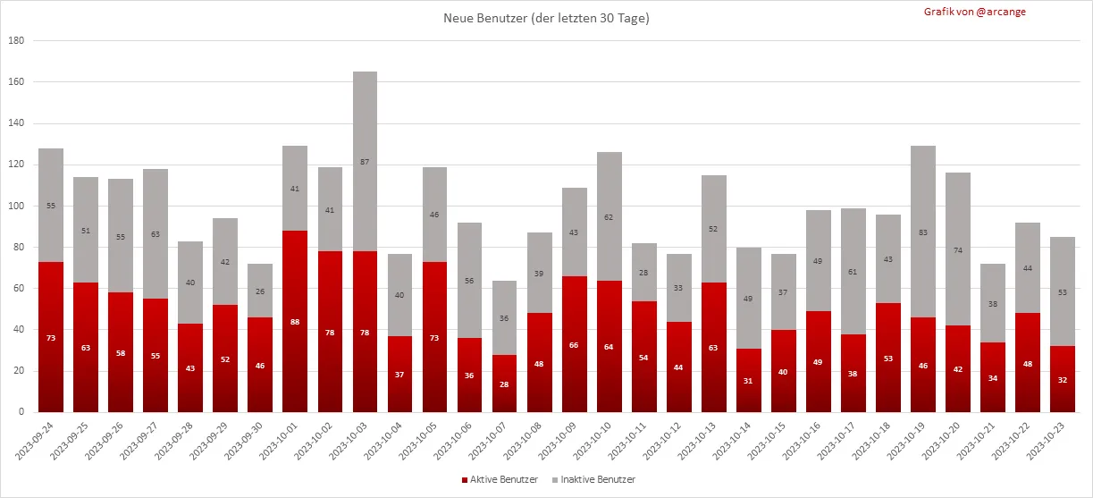 Das letzte Diagramm ist eine monatliche Zusammenfassung der aktiven Benutzer. Vorsicht beim interpretieren vom Wert der letzten Spalte, denn er kann viel niedriger sein, wenn das Monatsende noch nicht erreicht ist.