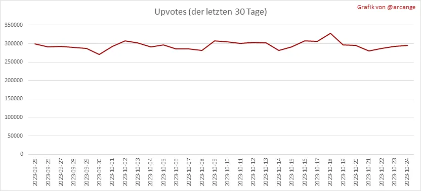 Diese Grafiken zeigen die Entwicklung der Kuration (Upvotes) über die gesamte Blockchain-Lebensdauer und der letzten 30 Tage.