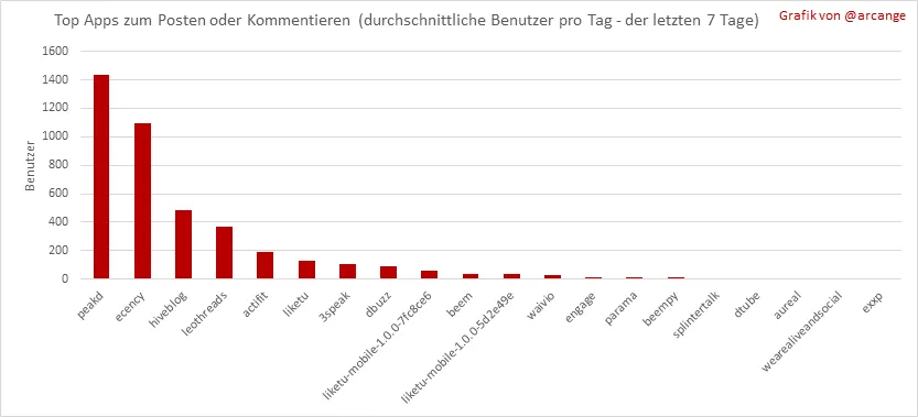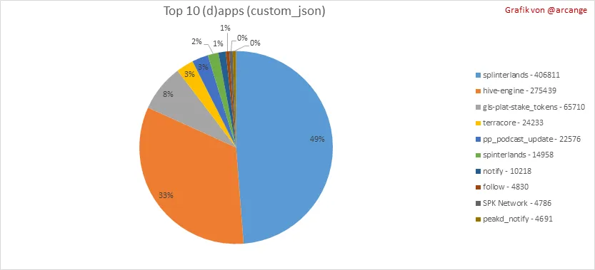 Dieses Diagramm zeigt, welche Apps die meisten Aktivitäten (custom_json-Operationen) in der Blockchain generieren.