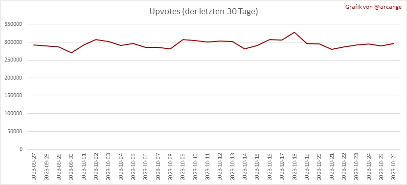 Diese Grafiken zeigen die Entwicklung der Kuration (Upvotes) über die gesamte Blockchain-Lebensdauer und der letzten 30 Tage.