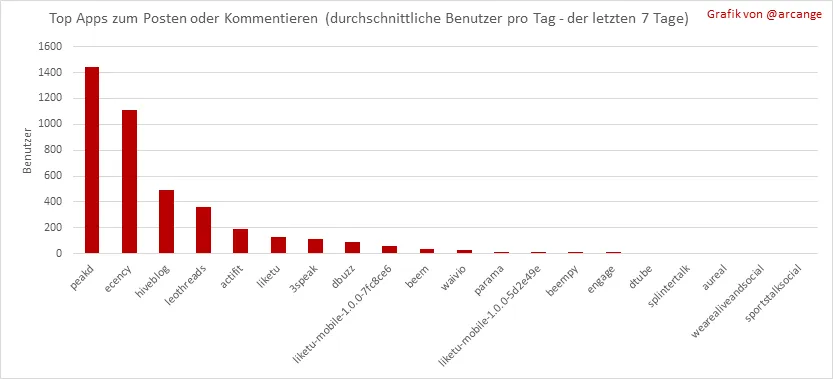 Diese Grafik zeigt, welche Apps am häufigsten zum Veröffentlichen von Posts und Kommentaren verwendet werden. Man beachte dabei, dass ein und derselbe Benutzer mehrere verschiedene Apps verwenden kann.