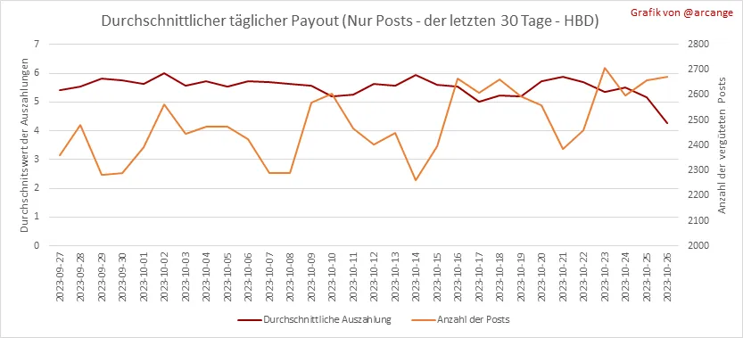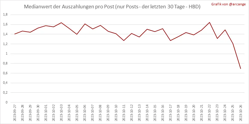 Diese Grafiken zeigen den durchschnittlichen Medianwert des Payouts pro Post der letzten 30 Tage.