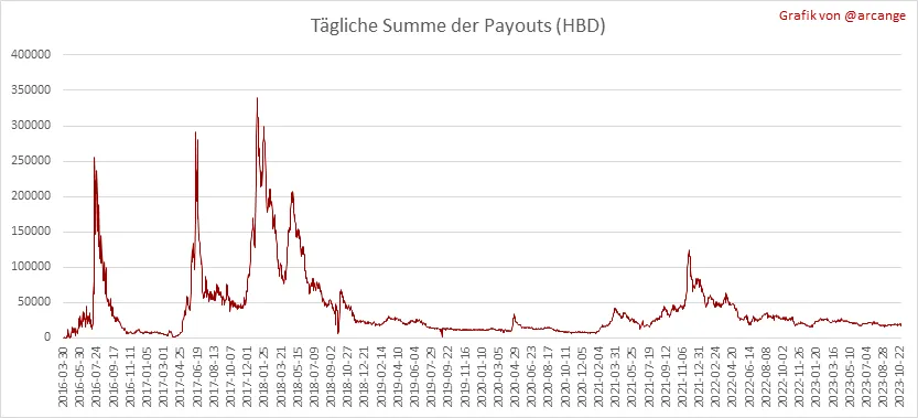Diese Grafiken zeigen die Summe der verteilten Auszahlungen (Beiträge und Kommentare) an jedem Tag.