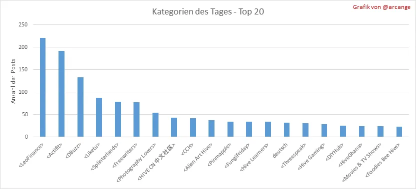 Diese Grafiken zeigen die aktivsten Communitys nach Anzahl der Beiträge (Über die gesamte Blockchain-Lebensdauer und am letzten Tag).