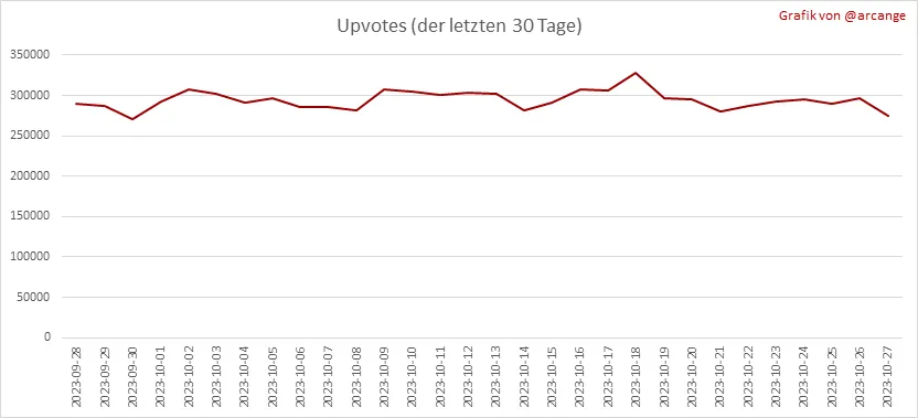 Diese Grafiken zeigen die Entwicklung der Kuration (Upvotes) über die gesamte Blockchain-Lebensdauer und der letzten 30 Tage.