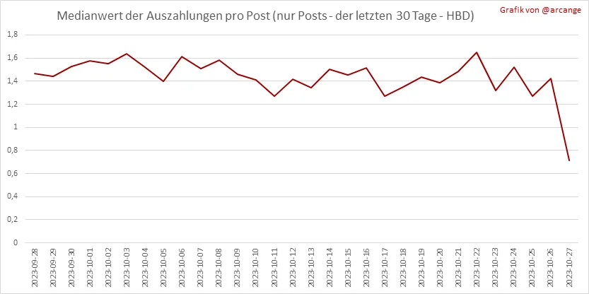 Diese Grafiken zeigen den durchschnittlichen Medianwert des Payouts pro Post der letzten 30 Tage.