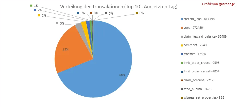 Diese Grafik zeigt die Verteilung der 10 wichtigsten Transaktionstypen nach der Anzahl der in der Blockchain ausgeführten Vorgänge.