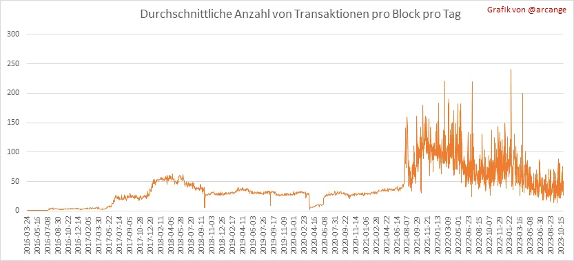 Diese Grafiken zeigen die Anzahl der Transaktionen pro Tag, die höchste Anzahl an Transaktionen pro Block, die durchschnittliche Anzahl an Transaktionen pro Block und die Anzahl der Transaktionen pro Block in den letzten 48 Stunden. Hier bekommt man eine Vorstellung von der gesamten Aktivität auf der Blockchain.