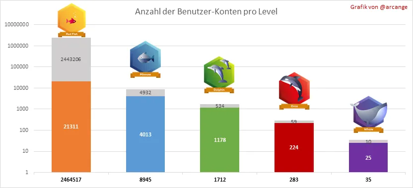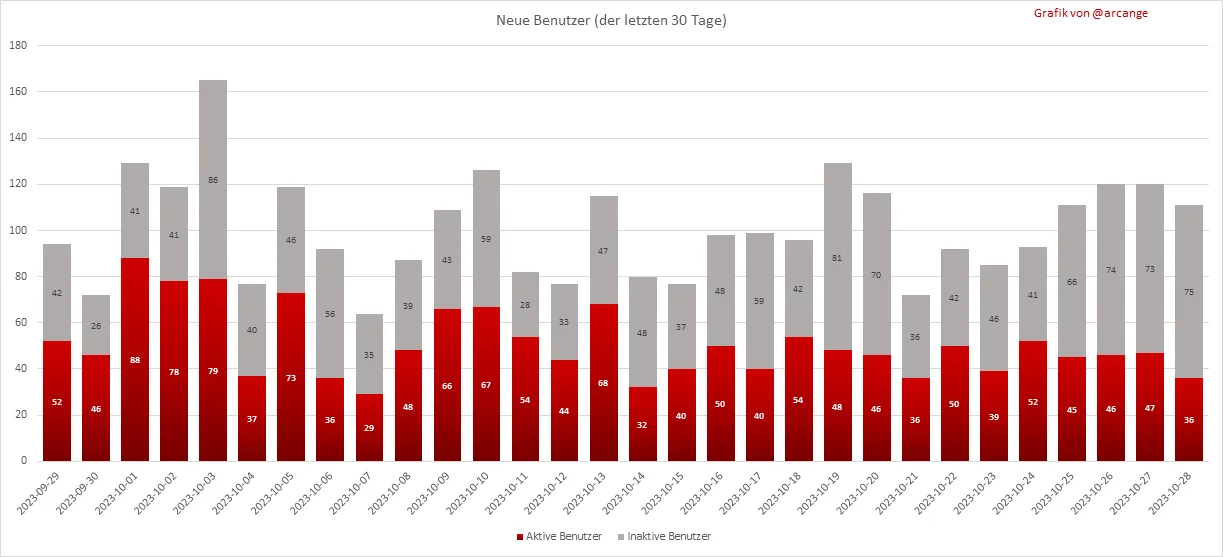 Der graue Teil jeder Spalte gibt an, wie viele Konten inaktiv sind (all Diejenigen, die in den letzten 30 Tagen nicht gepostet, kommentiert oder gevotet haben).