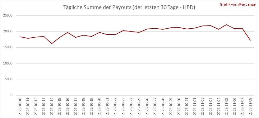 Diese Grafiken zeigen die Summe der verteilten Auszahlungen (Beiträge und Kommentare) an jedem Tag.