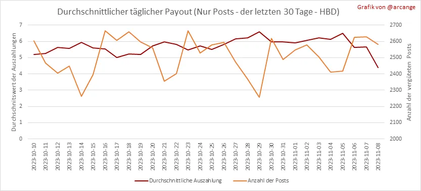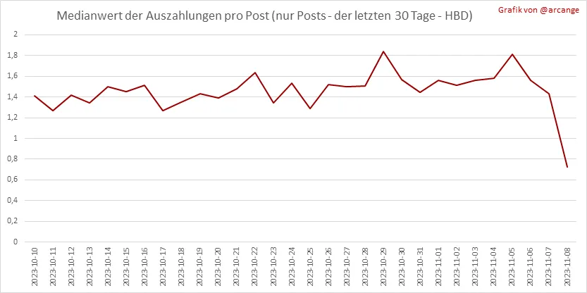 Diese Grafiken zeigen den durchschnittlichen Medianwert des Payouts pro Post der letzten 30 Tage.