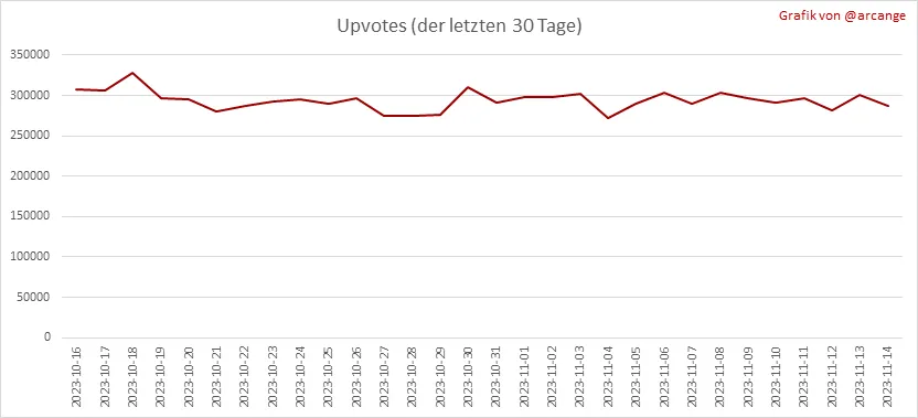 Diese Grafiken zeigen die Entwicklung der Kuration (Upvotes) über die gesamte Blockchain-Lebensdauer und der letzten 30 Tage.
