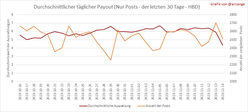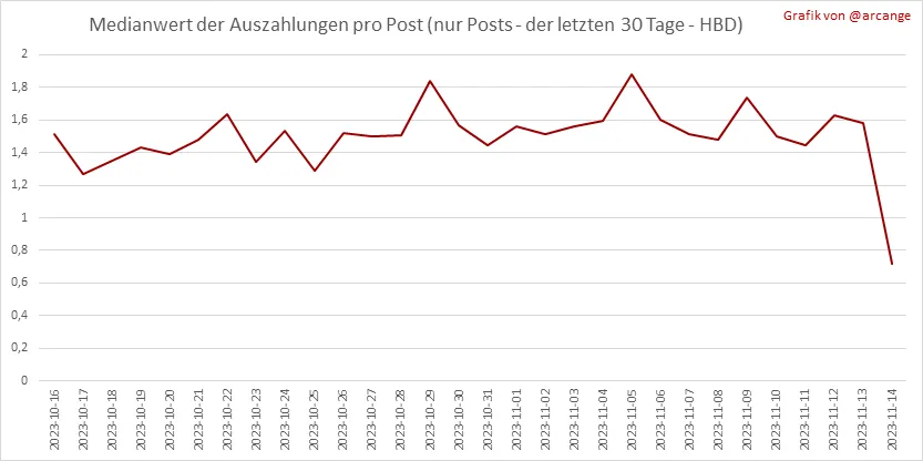 Diese Grafiken zeigen den durchschnittlichen Medianwert des Payouts pro Post der letzten 30 Tage.