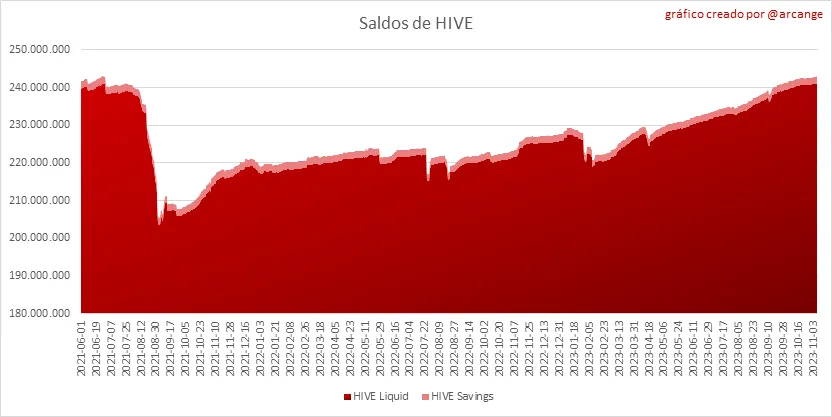 Este gráfico muestra el número de HIVE, liquido y en ahorros, en todas las cuentas.