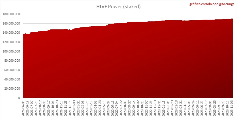 Estos gráficos muestran la evolución de HIVEs líquidas y HIVE bloqueadas (Hive Power).